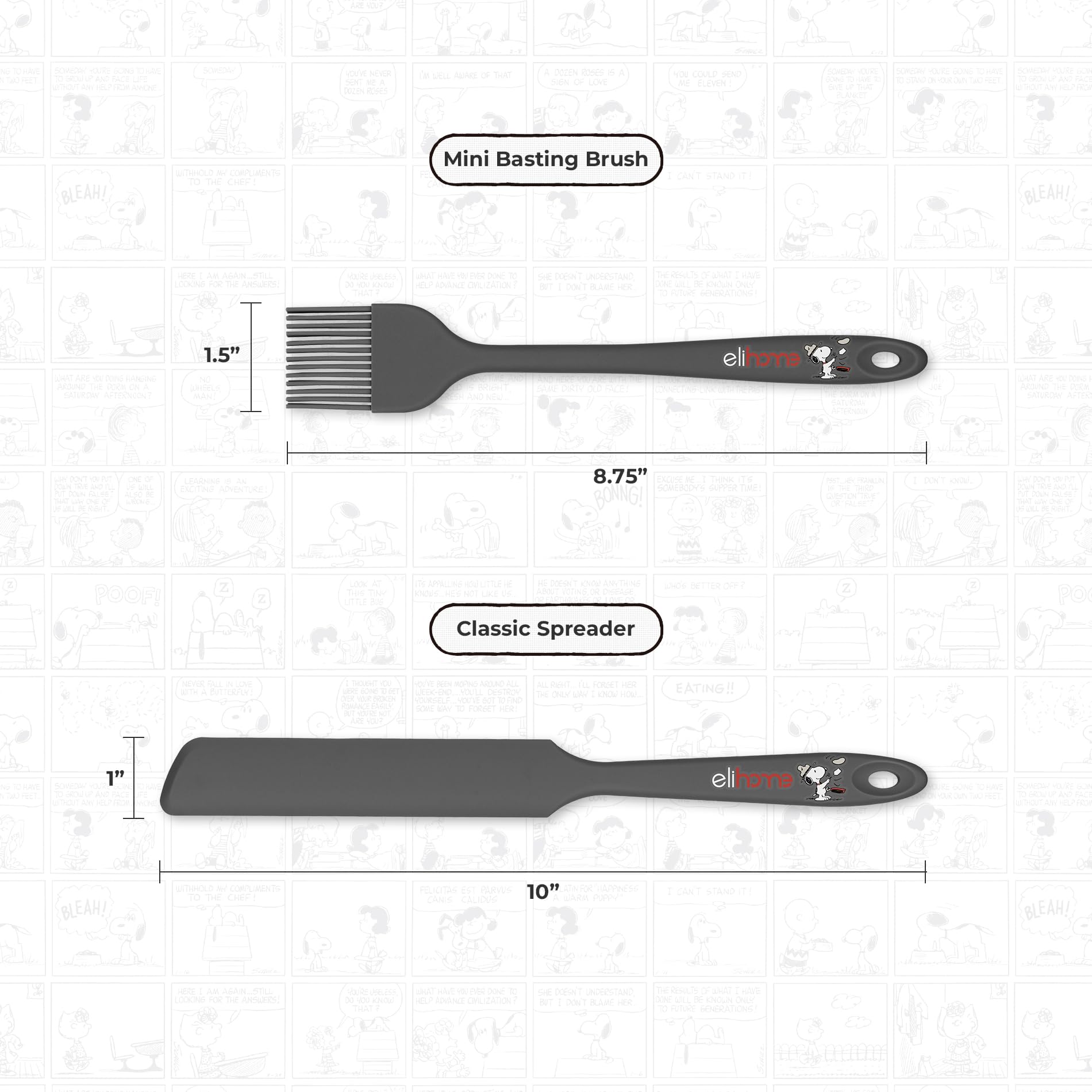 Elihome × Peanuts Silicone Basting Brush (8.75”) – Heat Resistant to 600°F, Food-Grade Platinum Silicone, Seamless 1-Piece Design, Non-Stick Safe, Dishwasher Safe, Dark Grey—